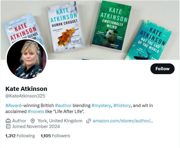This was nothing compared to when Kate Atkinson of the United Kingdom slipped into my DM’s on X. I had never heard of her, but thought I would check out her story and see who she is. On Facebook, the real Atkinson has 27.000 followers and follows 4 people. What would a famed novelist want with DM’s to a unknown like me? The difference in followers alone was a hint the account is fake, not to mention the account does not link to Atkinson’s own official website.